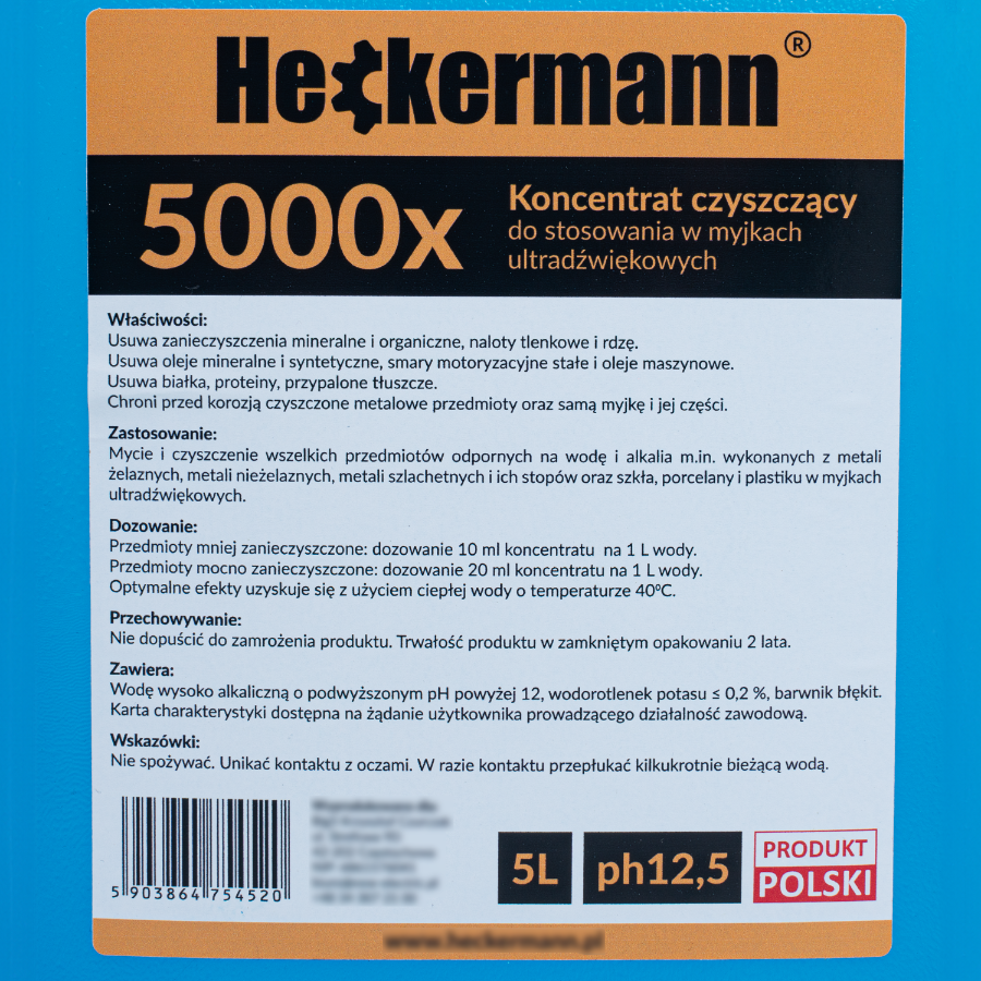 ▶️Koncentrat czyszczący do myjki ultradźwiękowej Heckermann 5000x o pojemności 5L